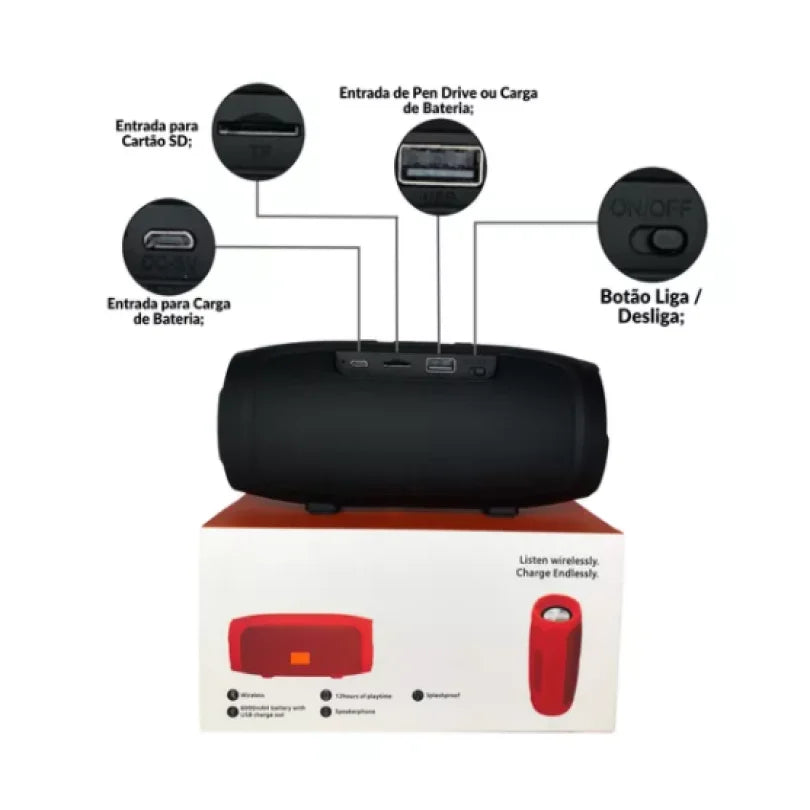 - Bluetooth; - Rádio FM; - Toca músicas via Pendrive; - Toca músicas via Cartão de Memória (Micro SD).