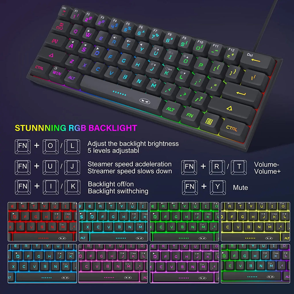 Teclado de 61 Teclas: Compacto, ideal para espaços menores, mantendo a funcionalidade essencial para jogos e produtividade.