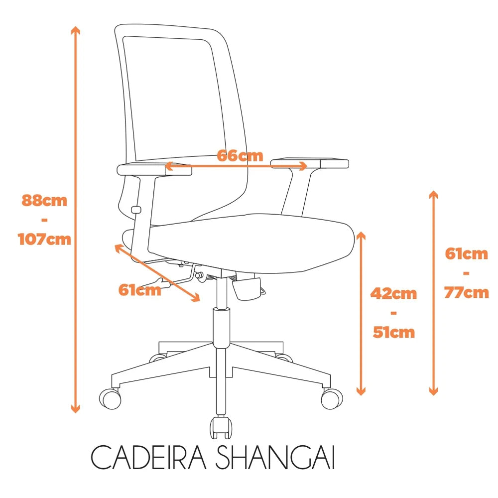 A Cadeira de Escritório Shanghai Ergonômica, com encosto especial e base Fratini de nylon preto, é ideal para o trabalho, seja no escritório ou em casa! Ela é totalmente ajustável, com ajustes de braços, assento e encosto, permitindo que a cadeira se adapte perfeitamente à pessoa que a estiver utilizando. O assento injetado em espuma é extremamente confortável, e o encosto com suporte lombar evita dores nas costas, ajustando-se ao seu corpo!