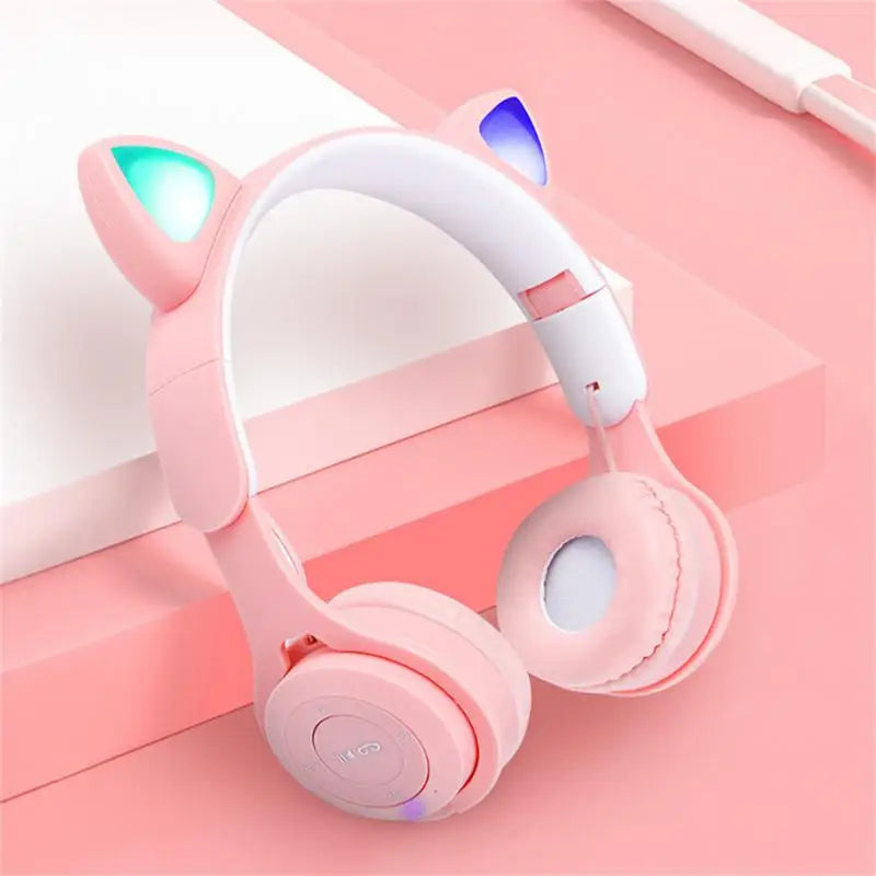 Y08M luminous cat ears blue-tooth Earphones Stereo Bass Helmets Wireless Headphones with Mic Gaming Headset Girls Gamer Gift